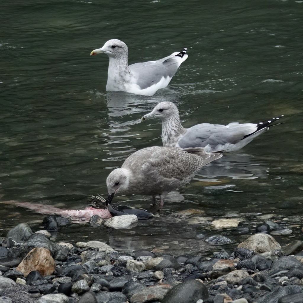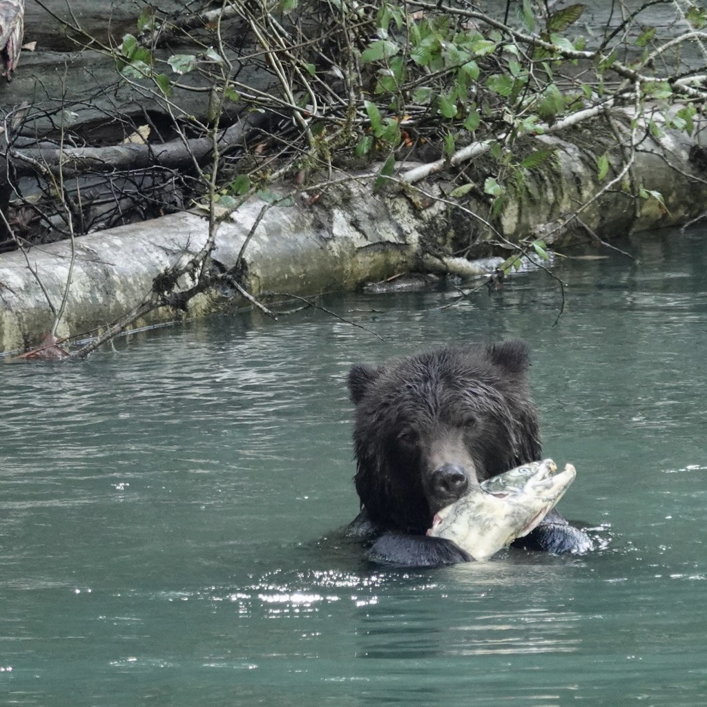 The spawning salmon also provide food for a whole range of other animals and birds. Not surprisingly we saw the birds, but other likely mammals here such as mink, weasels, and river otters we didn’t encounter during our relatively short time on the Klite.