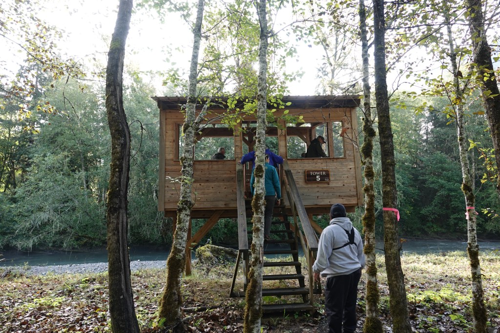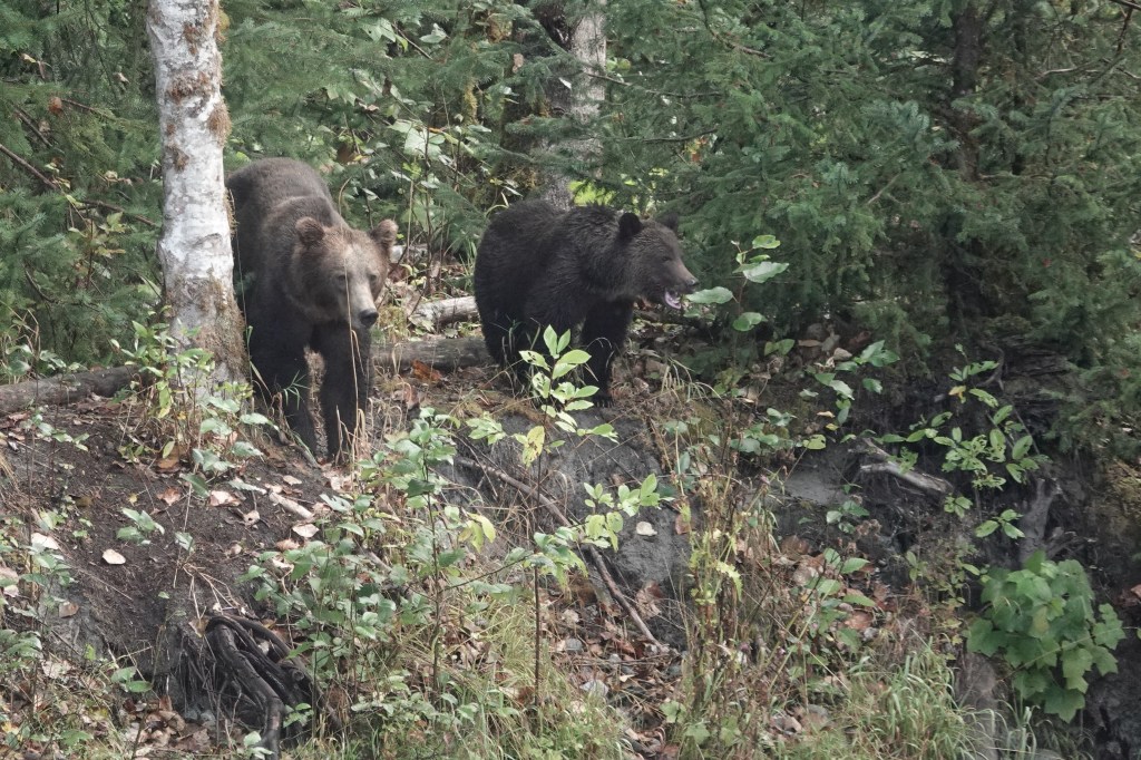 “How close were the grizzlies?” I’ve been been asked a few times since our return. Well, as close as about 15 feet! Fortunately, when the bear continued around the back of the platform, she didn’t make a move to climb up our stairs, phew! and started snuffling, and scuffing into the duff of the forest floor.