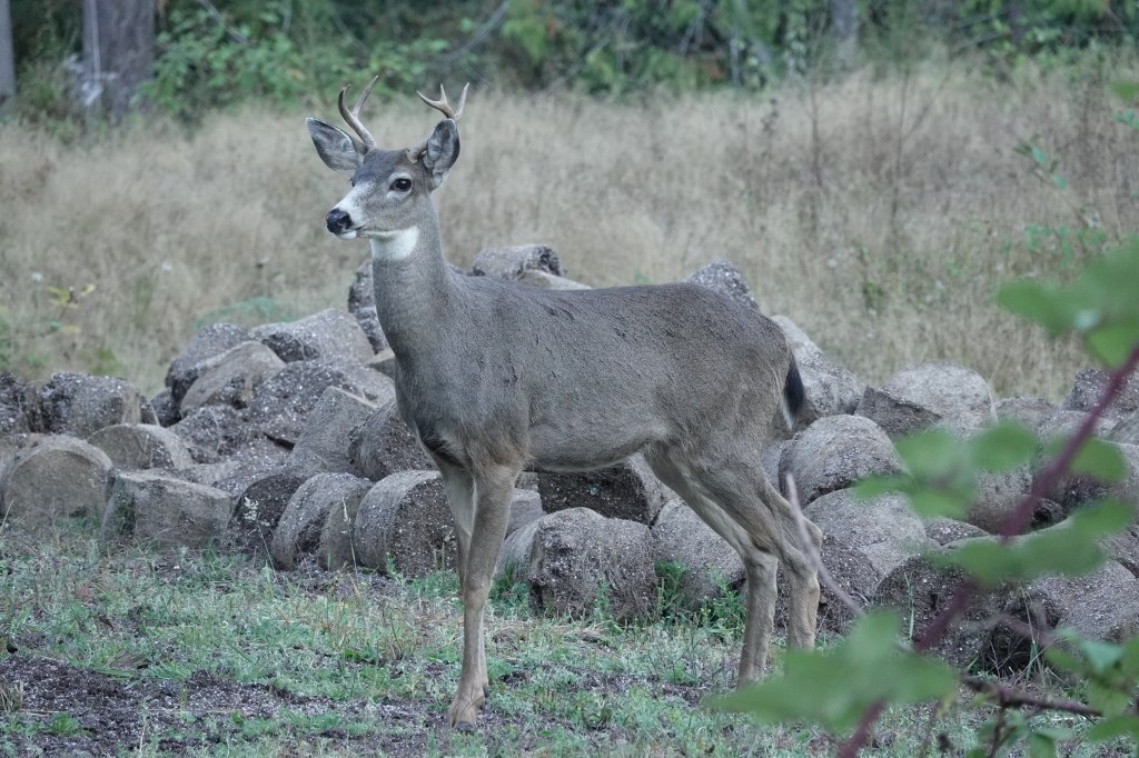 Not being in a hurry, we spent our first night near Madeira Park. After eating some dinner in our motel room I took a walk at dusk hoping for some late-day bird activity. The birds were quiet, but instead, and in keeping with the wildlife theme of the trip, I was surprised by this close encounter with a mule deer.