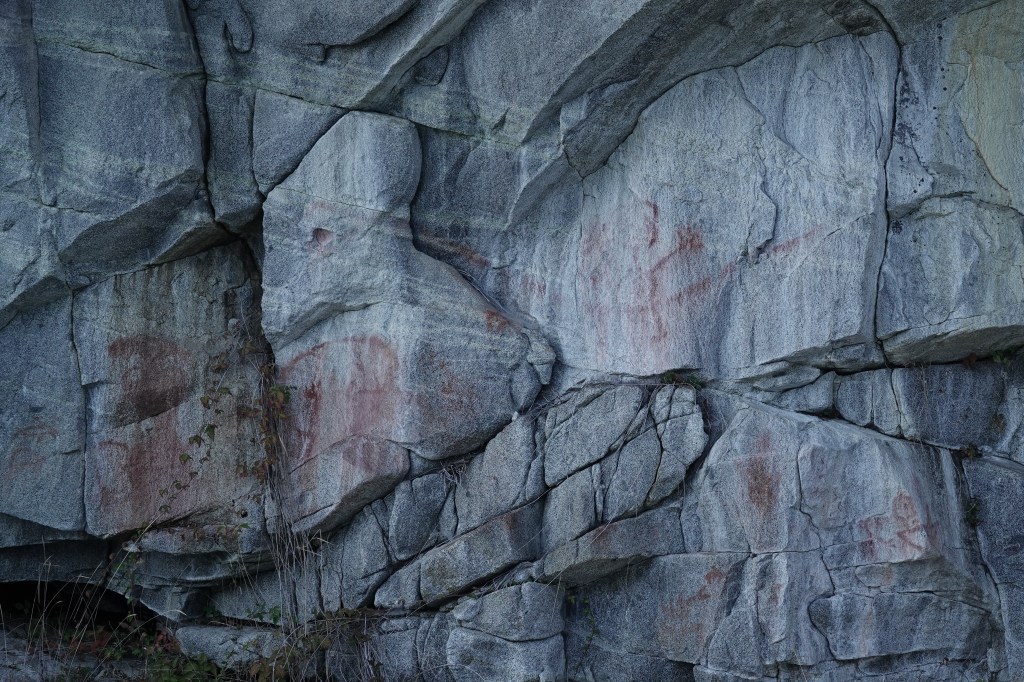 At another stop heading up the channel we viewed pictographs sheltered under an overhang on the steep rocky walls of the channel. Done by unknown First Nations, they conveyed messages also no longer known.